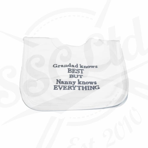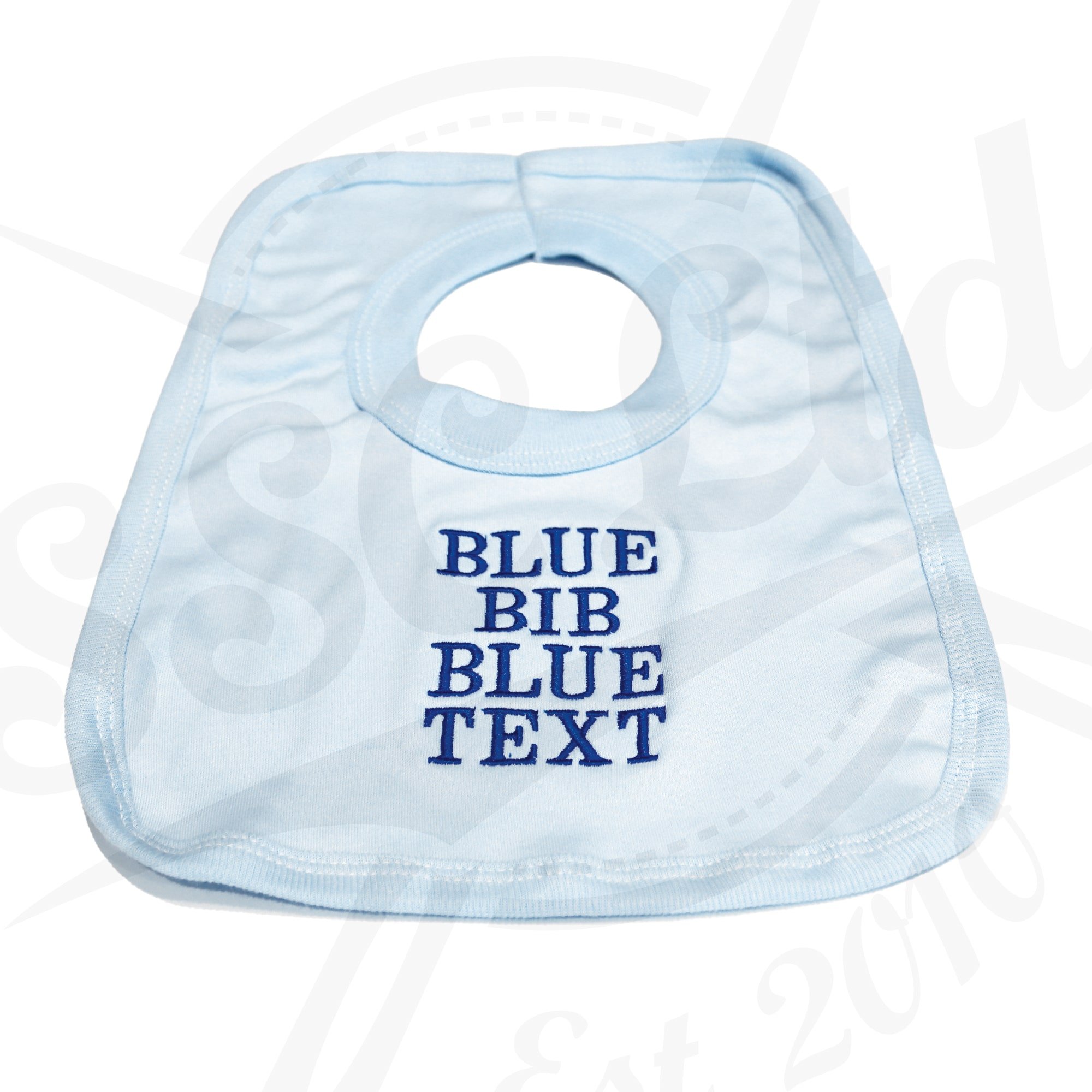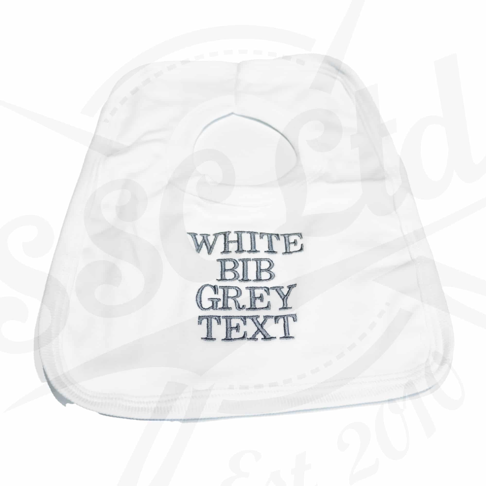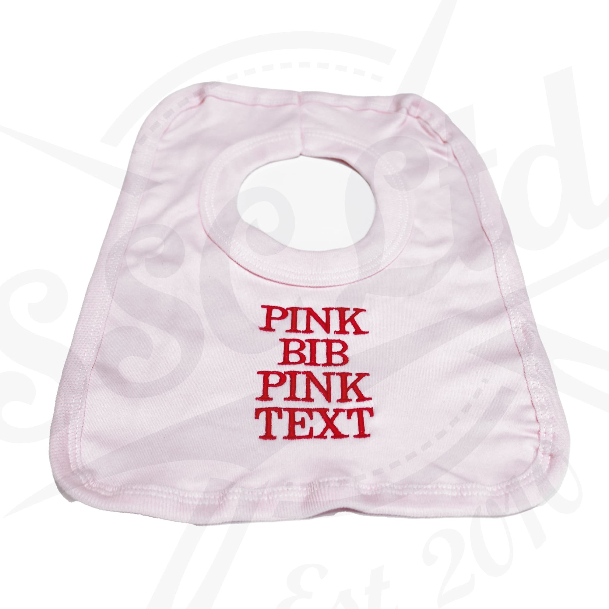 | Colour Choice | Blue Bib – Blue Text, Pink Bib – Pink Text, White Bib – Grey Text |